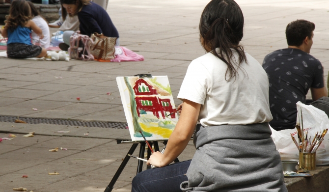 La jornada comenzó a las 10 hs, a medida que los participantes llegaban, se dirigían a Casa Madero para inscribirse y… ¡manos a la obra! Todos eligieron distintos rincones del campus para acomodarse, con sus reposeras, mantas, mate u otra bebida y algo para compartir y charlar mientras se pintaba.