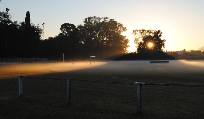 Los amaneceres de otoño nos regalan unos paisajes memorables en el campus del Colegio Ward. El sol, de apoco, se asoma por el este detrás del edificio de la Iglesia Metodista de Villa Sarmiento, y lentamente va creciendo con sus rayos entre la niebla tenue que se desplaza por el césped.