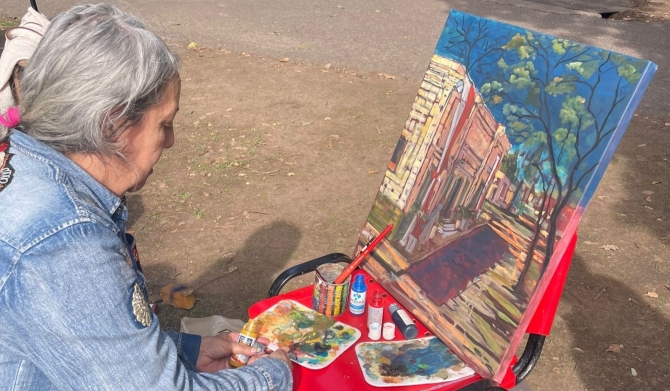 La jornada comenzó a las 10 hs, a medida que los participantes llegaban, se dirigían a Casa Madero para inscribirse y… ¡manos a la obra! Todos eligieron distintos rincones del campus para acomodarse, con sus reposeras, mantas, mate u otra bebida y algo para compartir y charlar mientras se pintaba.