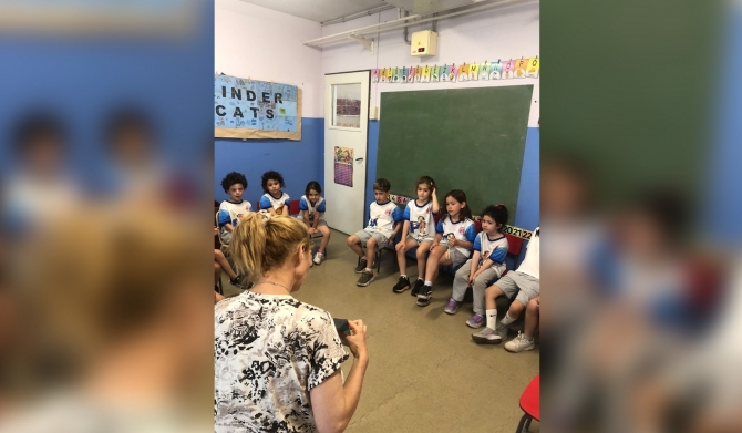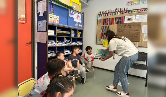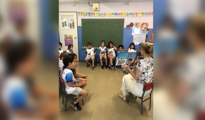 Con esa finalidad, las docentes de Inglés de 1er año visitaron el Jardín, para conocer a los niños y niñas y compartir con ellos un cuento en esta segunda lengua.  Fue un momento de lectura y disfrute para todos.